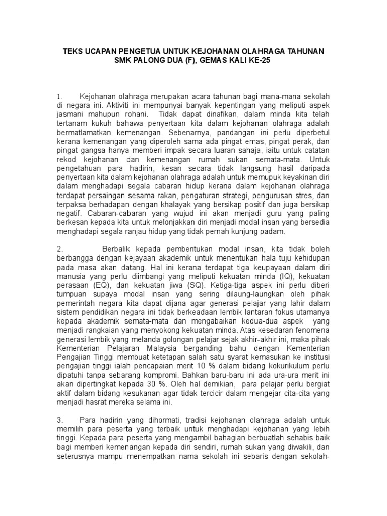 Teks Ucapan Pengetua Kejohanan Sukan Olahraga Smkc 2020 Pdf